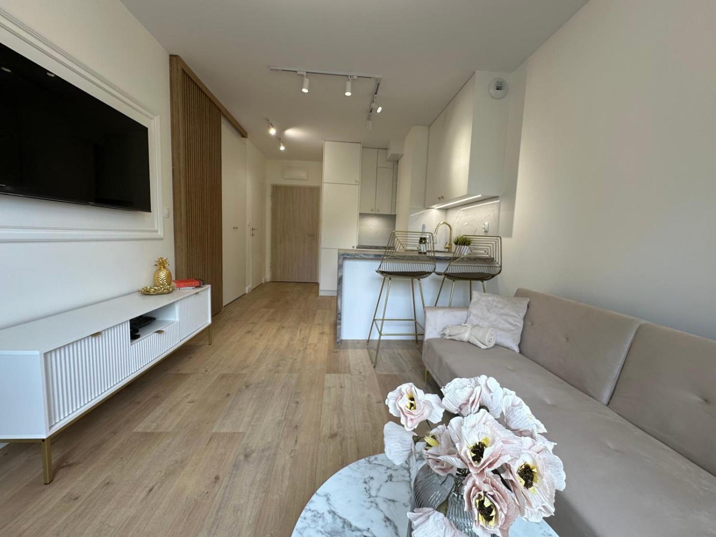Apartament z 1 sypialnią. This apartment includes 1 living room, 1 separate bedroom and 1 bathroom with a shower. In the well-fitted kitchen, guests will find a stovetop, kitchenware, an oven and an electric kettle. Boasting a balcony with garden views, this apartment also offers a washing machine and a flat-screen TV. The unit has 2 beds. Apartament - 4 osobowy. Powierzchnia pokoju ok.: 31 mkw.