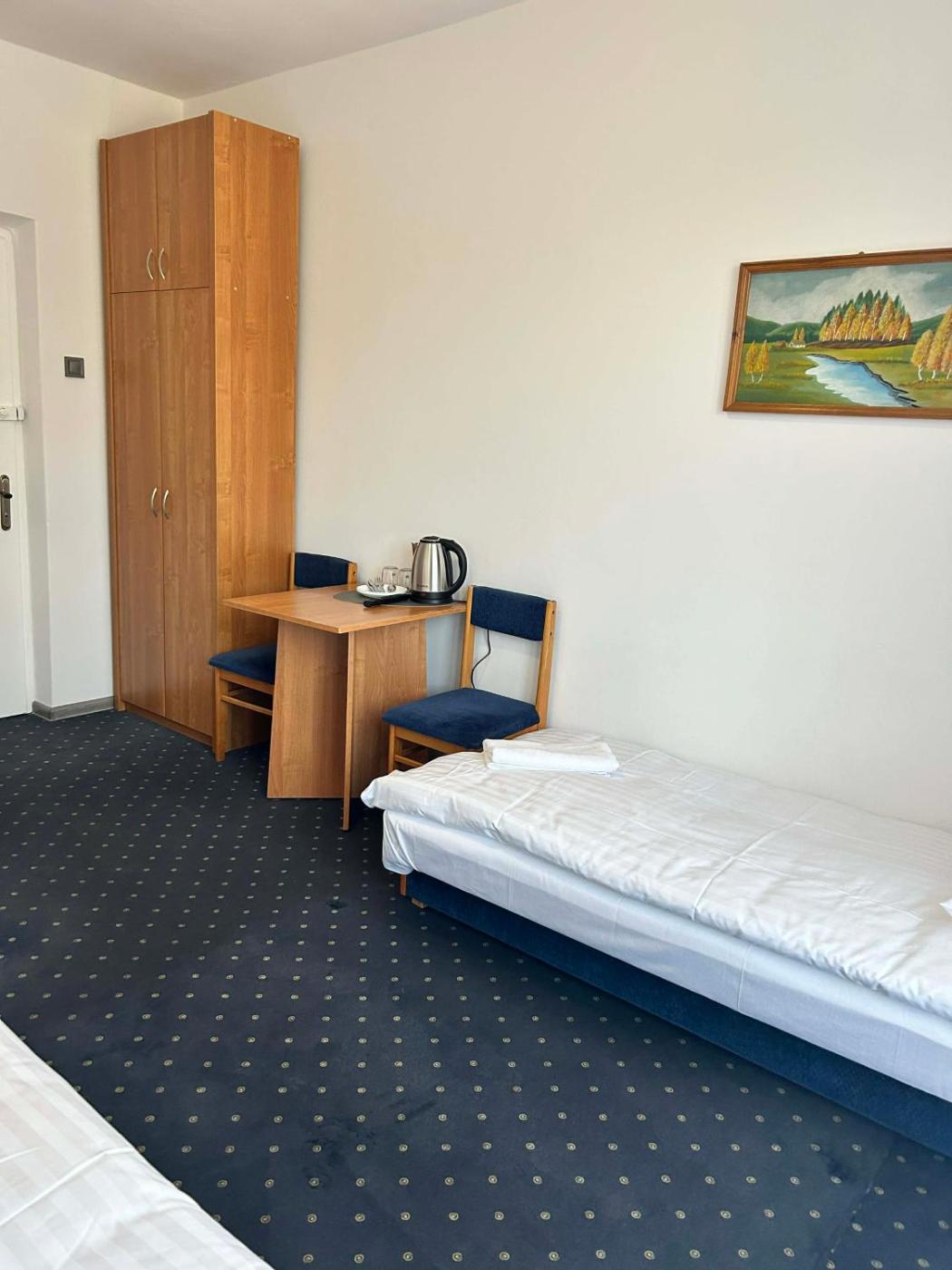 Pokój trzyosobowy. Ten pokój trzyosobowy oferuje łazienkę, balkon oraz telewizor z płaskim ekranem i dostępem do kanałów kablowych. W tej opcji zakwaterowania znajdują się 2 łóżka. Pokój Trzyosobowy - 3 osobowy. Powierzchnia pokoju ok.: 18 mkw.