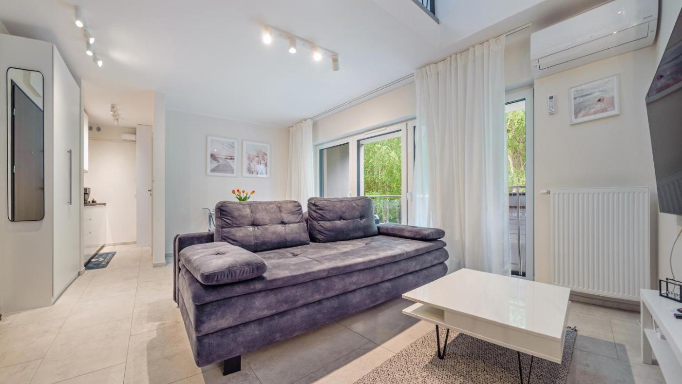 Apartament z 1 sypialnią. This air-conditioned apartment includes 1 living room, 1 separate bedroom and 1 bathroom with a shower. In the kitchenette, guests will find a stovetop, a refrigerator, a dishwasher and kitchenware. This apartment has a washing machine, a coffee machine, a flat-screen TV and a balcony. The unit has 3 beds. Apartament - 5 osobowy. Powierzchnia pokoju ok.: 50 mkw.
