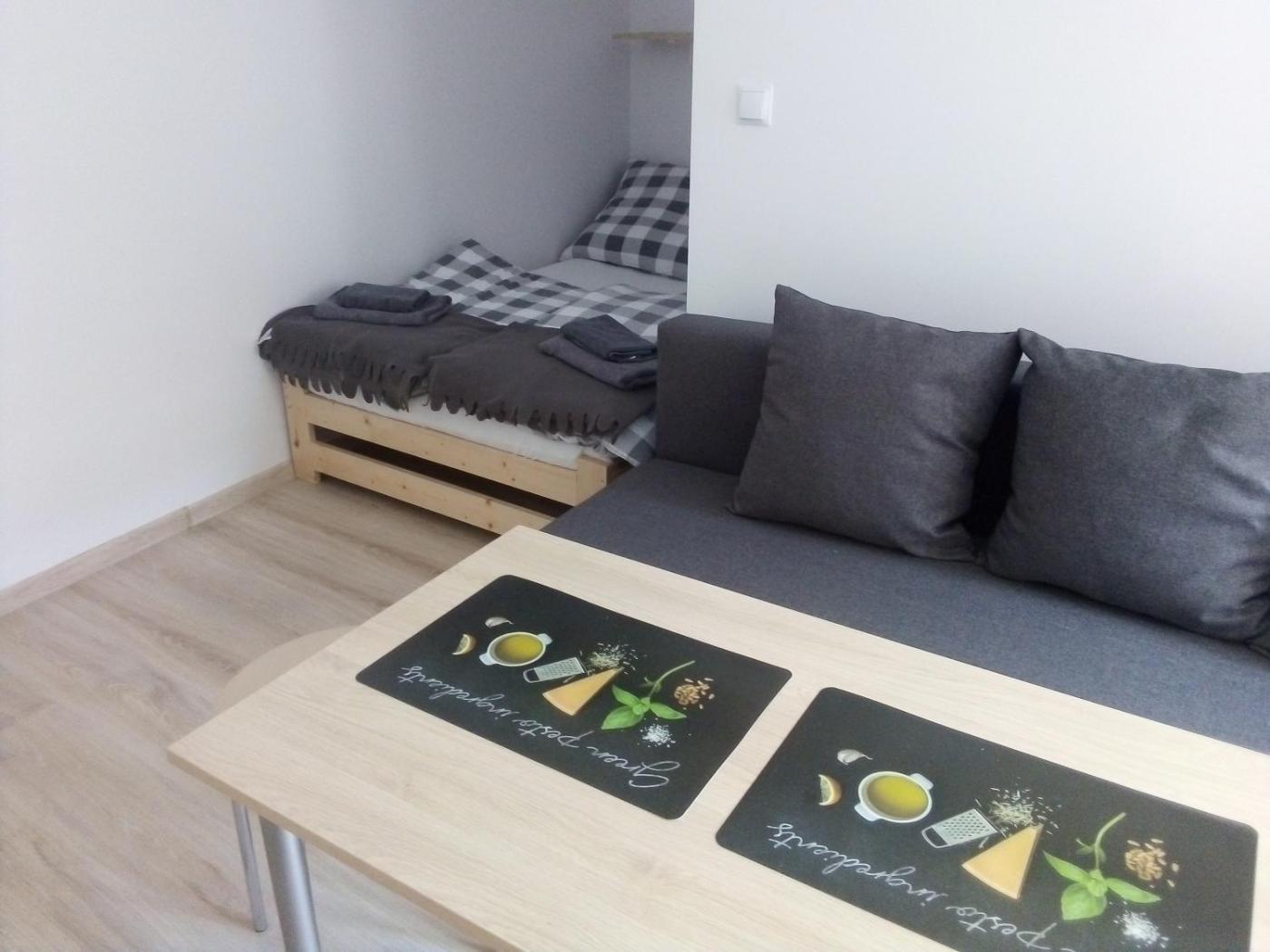 Apartament z 1 sypialnią. Featuring a private entrance, this apartment also is comprised of 1 living room, 1 separate bedroom and 1 bathroom with a shower. Guests will find a stovetop, a refrigerator, kitchenware and a microwave in the kitchenette. The apartment also has a barbecue. Boasting a terrace with ancourtyard view, this apartment also offers a washing machine and a flat-screen TV. The unit offers 3 beds. Apartament - 4 osobowy. Powierzchnia pokoju ok.: 16 mkw. ;