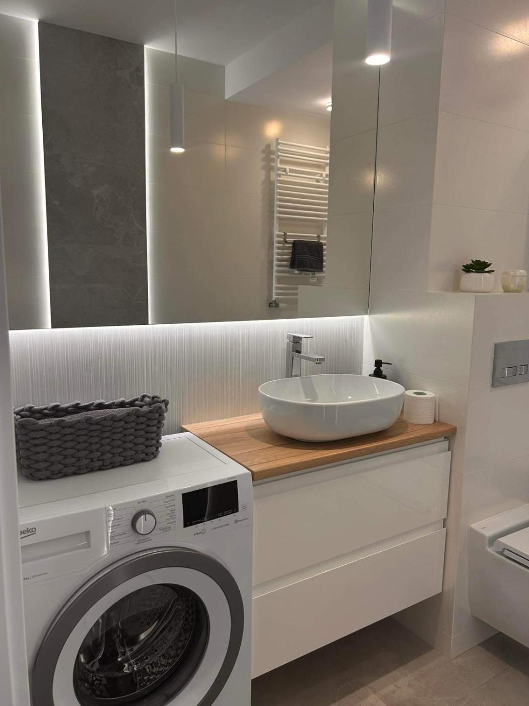 Apartament z 1 sypialnią. This apartment consists of a kitchen, a seating area, 1 separate bedroom and 1 bathroom with a bath and a shower. Guests can make meals in the kitchen that is equipped with a stovetop, a refrigerator, a dishwasher and kitchenware. Featuring a balcony with garden views, this apartment also provides a washing machine and a flat-screen TV with streaming services. The unit offers 1 bed. Apartament - 2 osobowy. Powierzchnia pokoju ok.: 47 mkw.